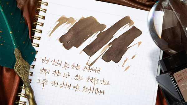 The Nightingale and the Rose ink blends a beige-toned light brown base with striking red glitter, creating a mix of softness and brilliance. As it dries, the red glitter shines like a blooming rose. This ink exudes a soft, gentle feel with red glitter as a standout detail.