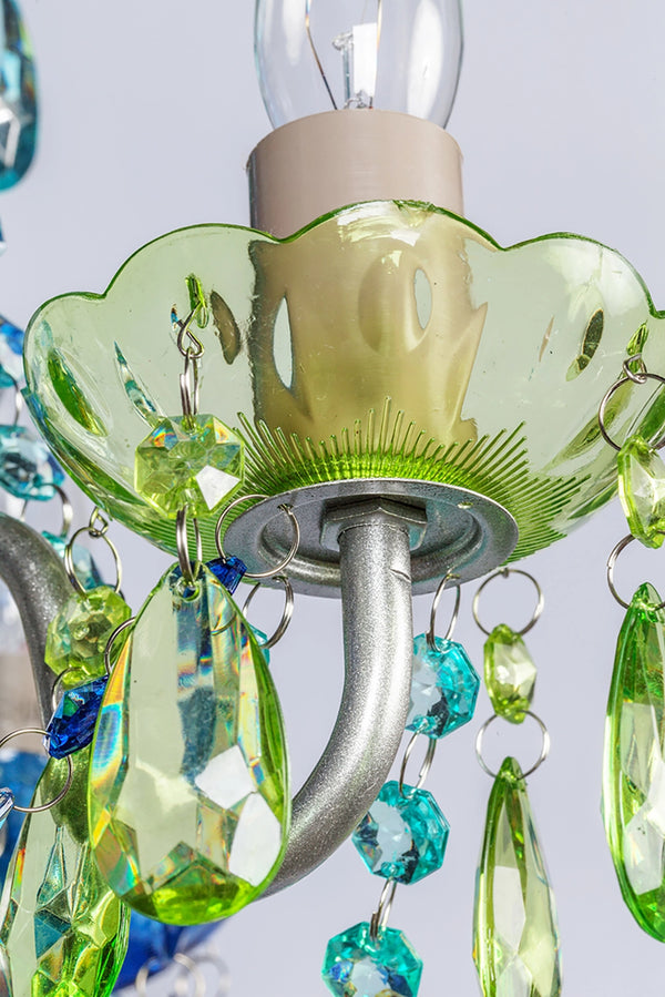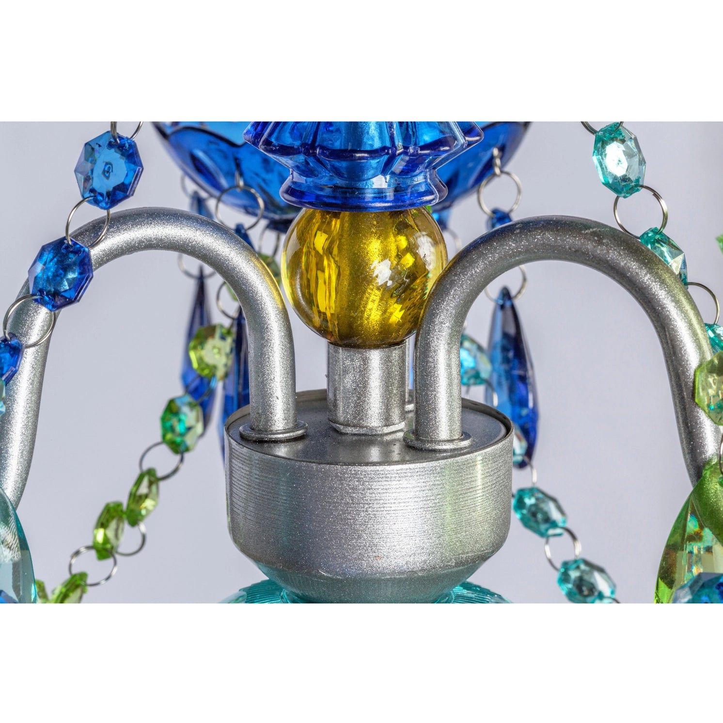 Our Plug-in Chandelier can hang anywhere with no need for a ceiling junction box. This acrylic crystal-beaded Gypsy Chandelier adds a touch of high design and baroque class to any interior. A delightful mixture of crystals, beads and swag!