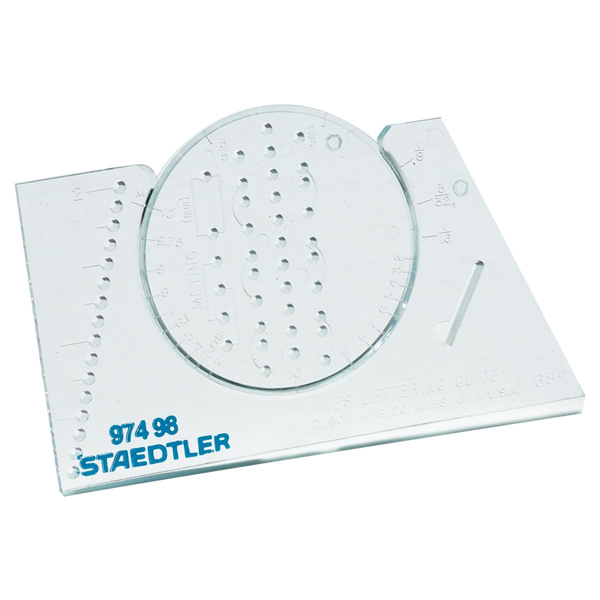 Remember in elementary school when you learned to write? Most of us practiced in a lined pad with three lines: a top and bottom solid line with a dotted line in the middle. The Ames lettering guide also uses three lines to mark the top, middle, and bottom of your lettering. The Staedtler Mars Ames lettering guide will help you produce evenly spaced lines and guides for writing, architecture, or engineering work. The holes in the tool create consistent spacing, and the rotating wheel allows you to adjust the size. This durable plastic lettering guide helps you draw guidelines and sloped lines for lettering from 1/16 inches to 2 inches. It features both metric and fractional calibrations and comes with helpful instructions and tips on how to best use it.