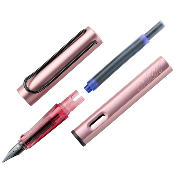 Another special edition LAMY AL-star fountain pen color for 2024! The LAMY AL-star is the aluminum big brother to the LAMY safari. The pink translucent triangular grip section makes it great for those starting out who have no idea how to hold a fountain pen, but it's used and loved by fountain pen lovers of all levels of experience.