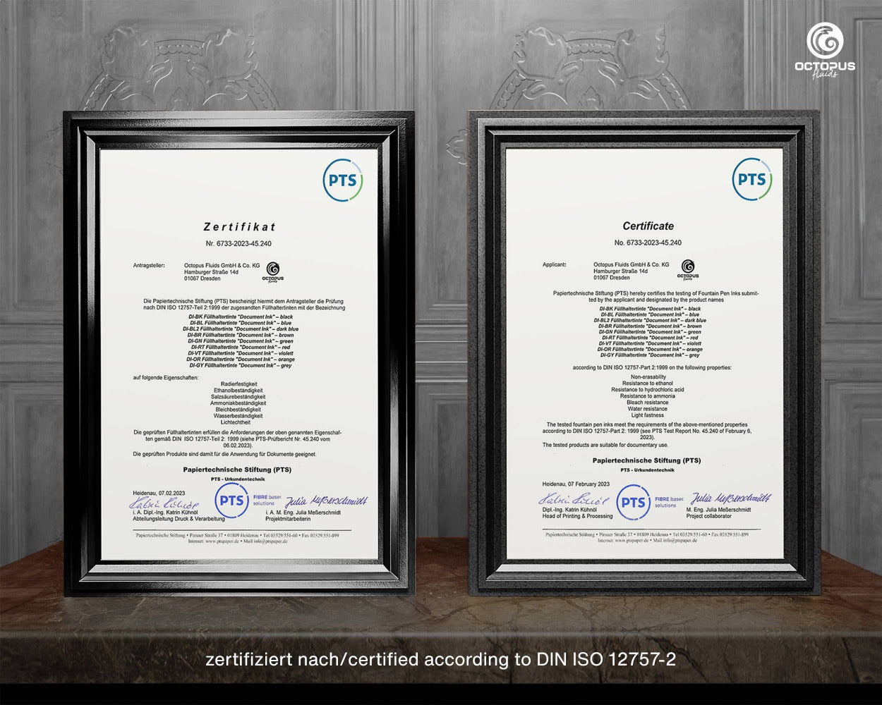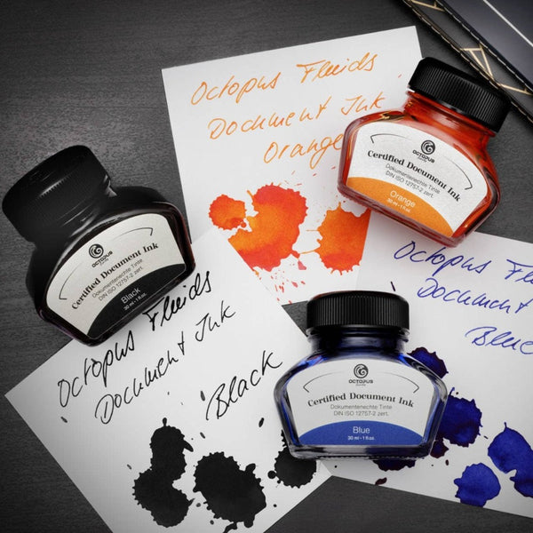 The Octopus Fluids Document Inks are indelible writing inks, which were specially developed for professional use in the office, in particular for signing official documents and certificates.