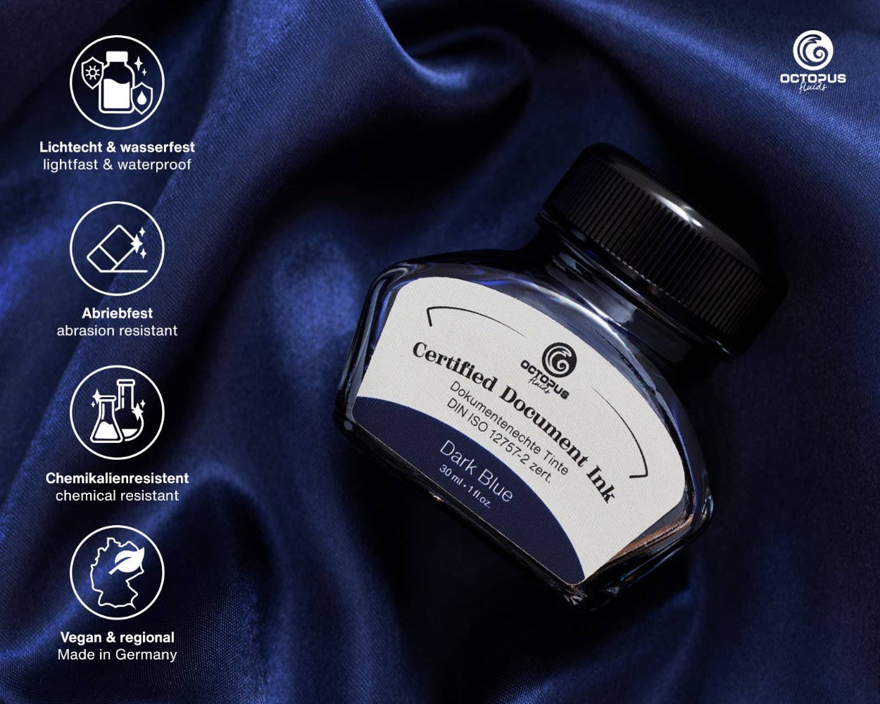 The Octopus Fluids Document Inks are indelible writing inks, which were specially developed for professional use in the office, in particular for signing official documents and certificates.