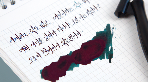 This ink represents the blood splattered on the ruins of a war. On the bluish-green base color, dark red sheen appears.