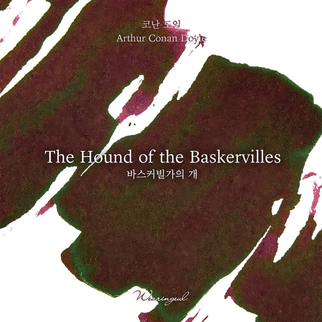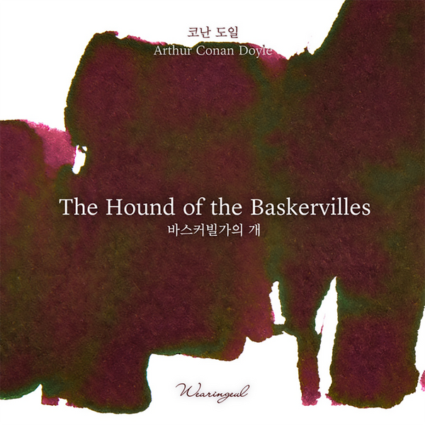 The Hound of the Baskervilles ink is colored with the motif of the legend of a giant hunting dog that breathes fire. With its deep red fur and a green collar ominously glowing, it depicts the desolate night guarded by the deathly hunting hound in the wilderness.