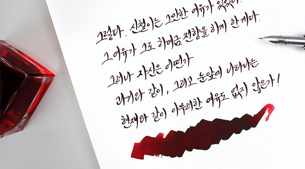 This ink represents a withering burgundy red flower. With great flow of the ink, it shows gorgeous dark red tone with stable visibility.