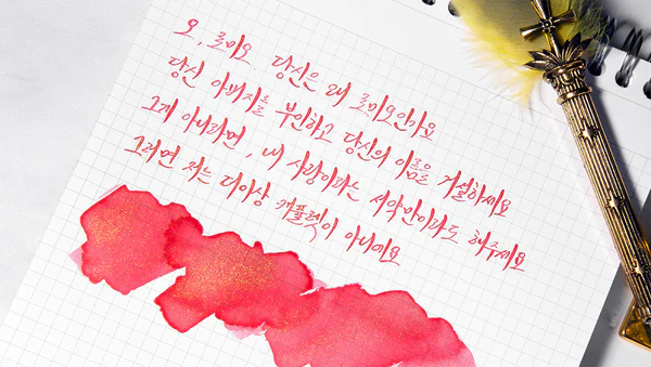 Juliet ink is crystal clear pink with gold glitter just like a golden tiara. It paradoxically illustrates a happy fantasy with Romeo and Juliet.