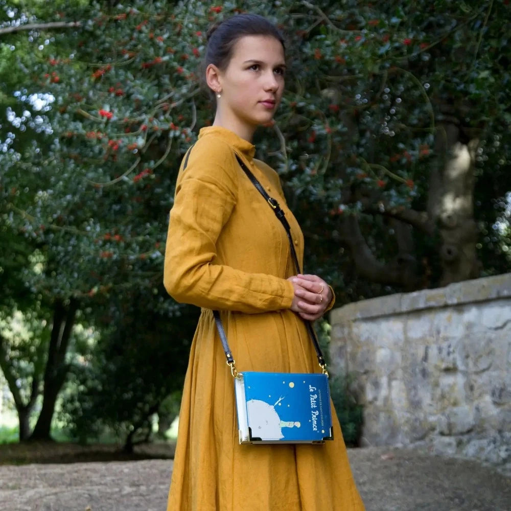 This wonderfully unique handbag celebrates Antoine de Saint-Exupéry’s beloved children’s novel, The Little Prince (Le Petit Prince). It features the Little Prince standing on his home planet, with a deep blue space backdrop behind him. The back of the bag is also decorated with the quote ‘All grown ups were once children…but few of them remember it’.